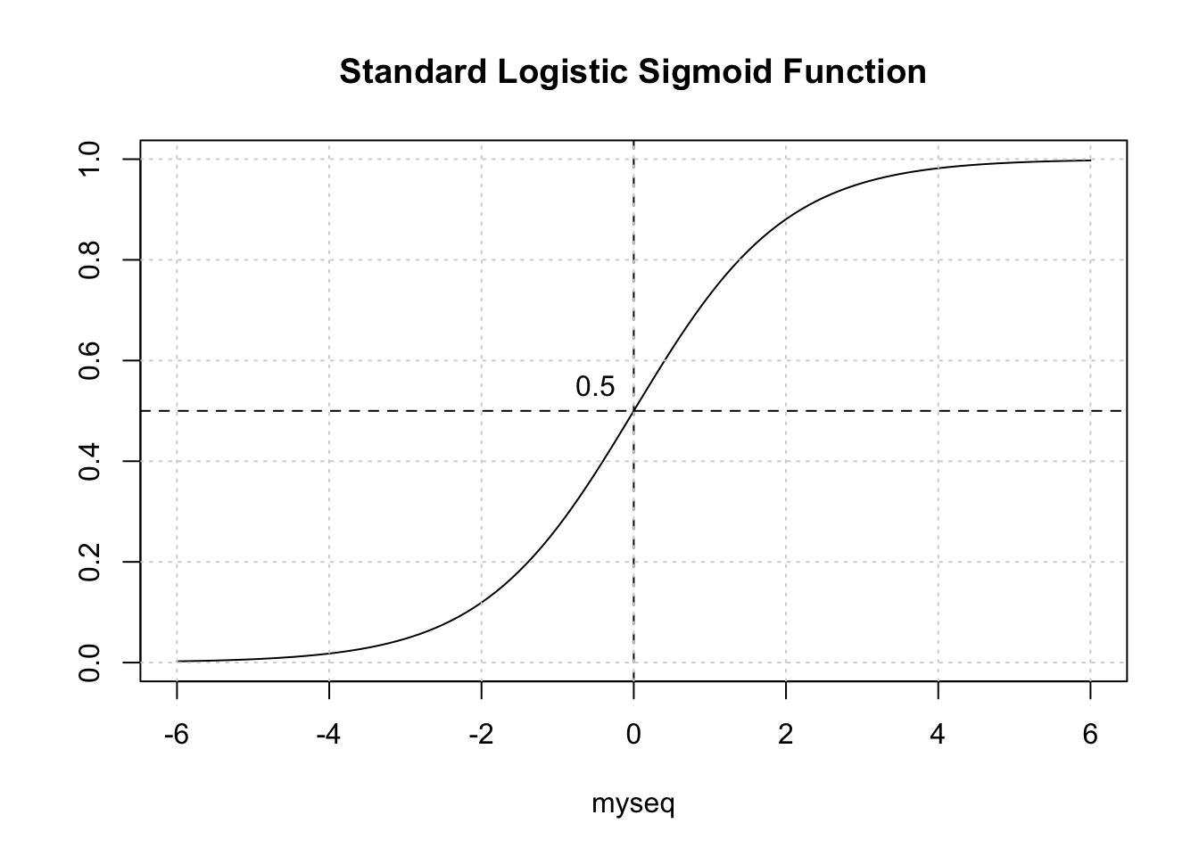 With logistic regression we are dealing with a curve like the one below which is a sigmoid function. The idea is to take our probabilities, which range between 0 and 1, and then pick a threshold over which we would classify that person as being positive for diabetes. In this context, we have a continuum.