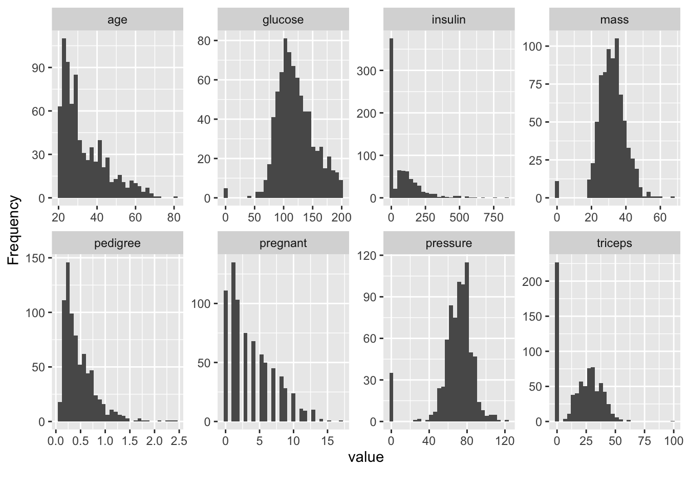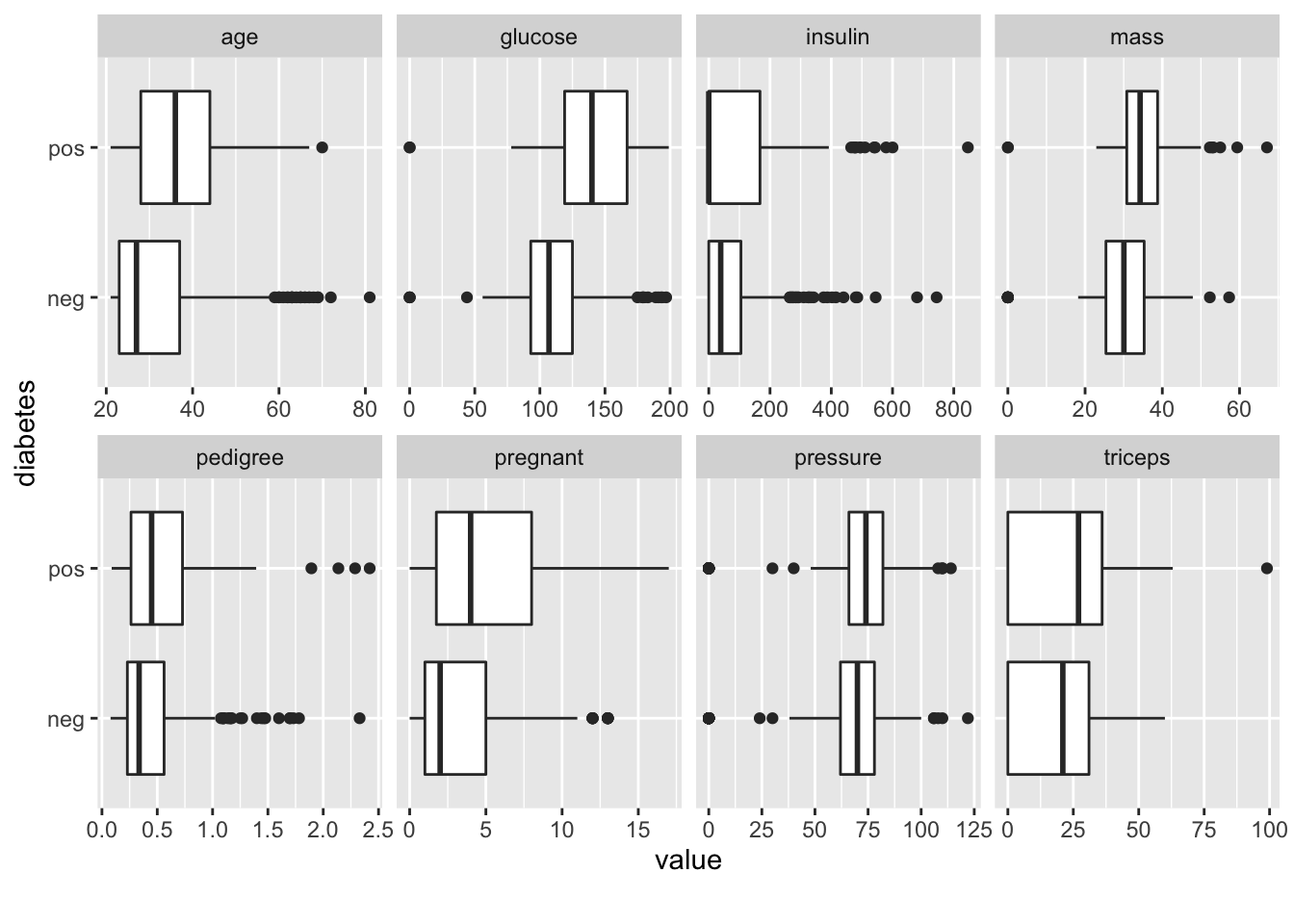 head(pm)## pregnant glucose pressure triceps insulin mass pedigree age diabetes